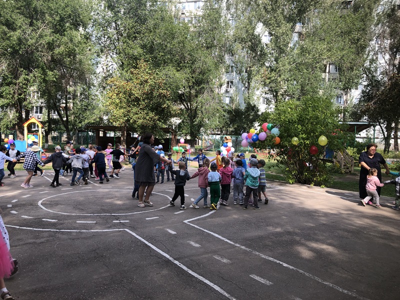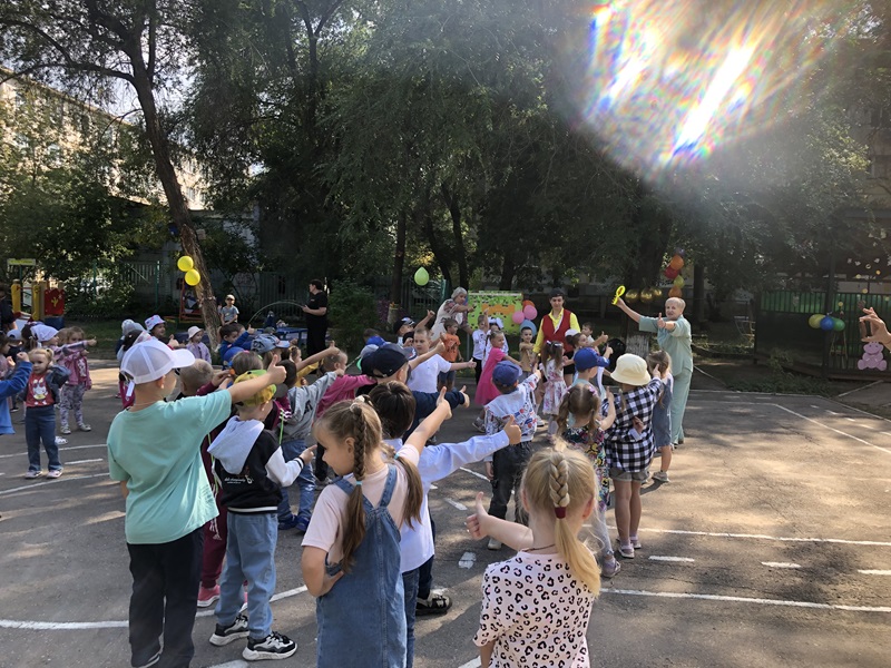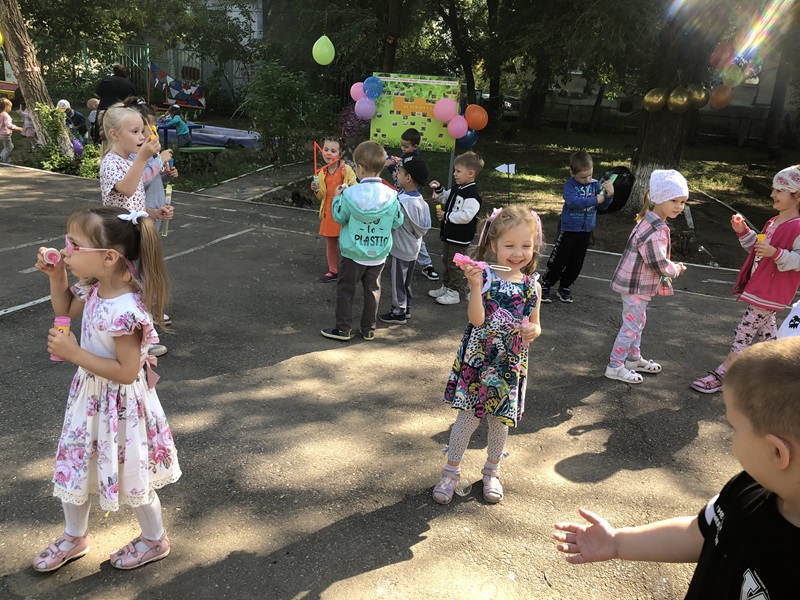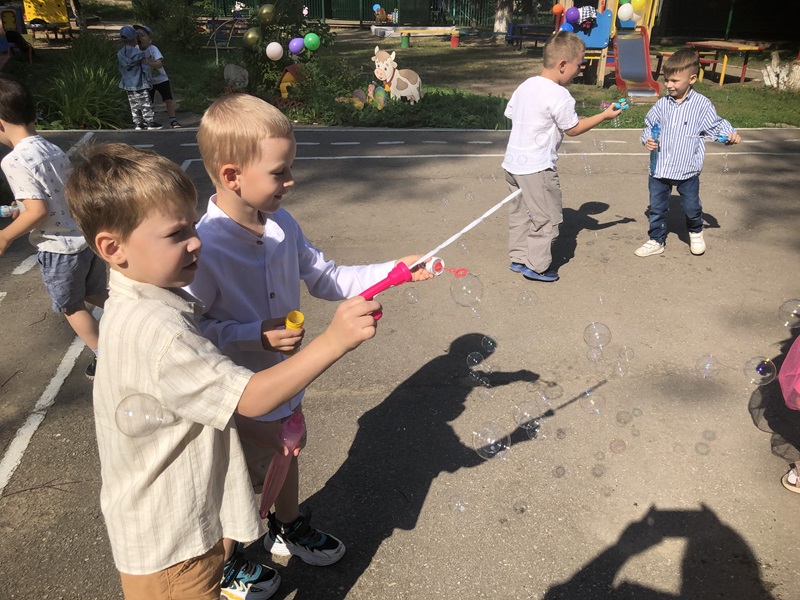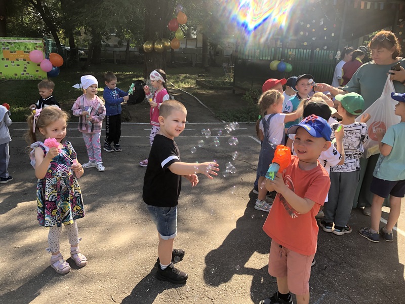 Сегодня 1 сентября в детском саду прошел праздник «День знаний». В нашем детском саду первый день нового учебного года прошел ярко и эмоционально. В гости к ребятам приходил Шаляй — валяй. Ребятами с ним играли, веселились, повторяли буквы и устроили веселую дискотеку с мыльными пузырями.