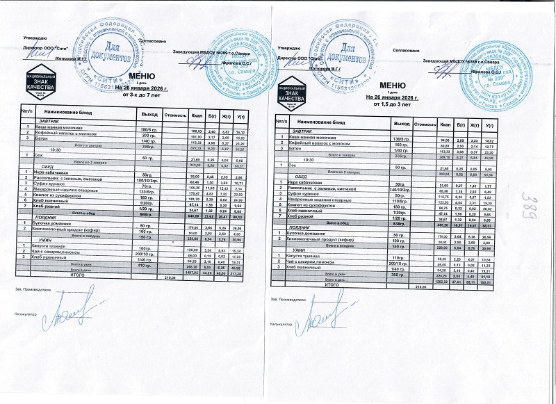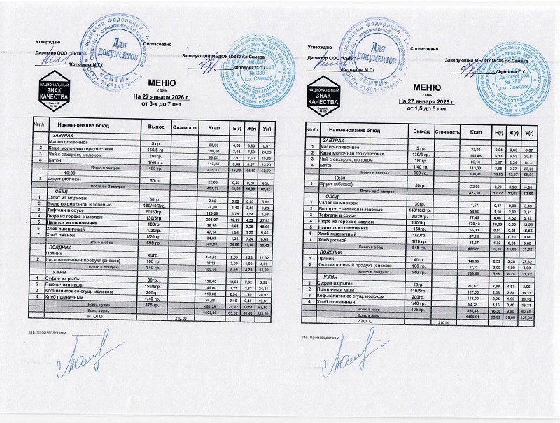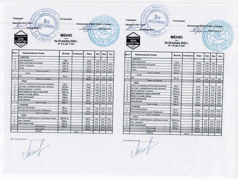 Организатором питания в МБДОУ «Детский сад № 389» г.о. Самара является ООО «СИТИ»